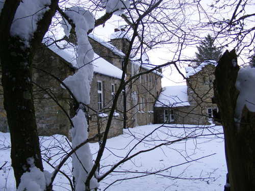 2000-2014: Highgreen, Tarset, Northumberland. Bloodaxe was the first occupant of an office newly converted from a stable block and one-time granary behind Highgreen Manor which also hosts VARC’s rural artist residencies. Basil Bunting lived in a cottage a few miles down the Tarset valley in 1981-84. Bloodaxe stayed at Highgreen for 14 years, but bad winters were a problem: staff often couldn’t get to work, and when trucks did manage to get through with deliveries of books, they’d get stuck in the snow.