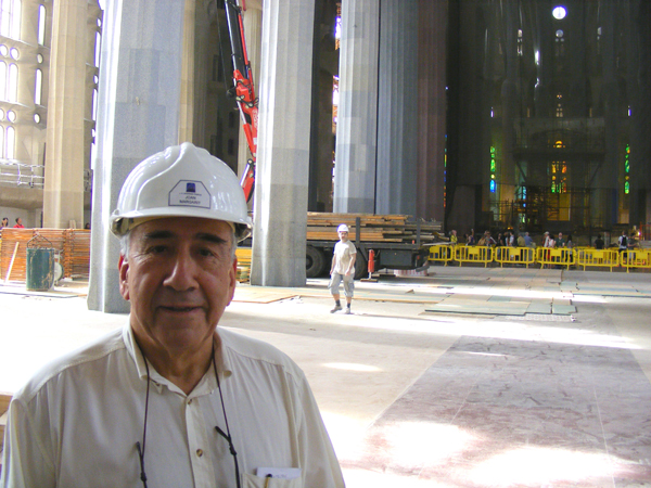Joan Margarit pictured in 2010 in Gaudí’s Sagrada Família cathedral in Barcelona, where he worked as an architect for many years with the team working on its completion. Photo by Neil Astley.