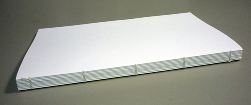 Book block with sewn signatures prior to application of glue in the binding process.